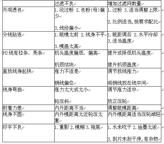 4, boot production is generally 30 ℃ M / min, wire partial view learning, products and rubber Rally bright haze and other quality requirements to meet customer requirements, parallel wire should be noted that sub-line can not have approved front, Siamese not tight before closing barrel. Acceleration generally a 30 ℃ M / min starting point, and each must be controlled acceleration model light fog, if the deviation should be adjusted immediately eye mold temperature to achieve customer requirements, and the other wire should be noted that after the partial core accelerated degree change, due to head pressures, timely response to be adjusted.