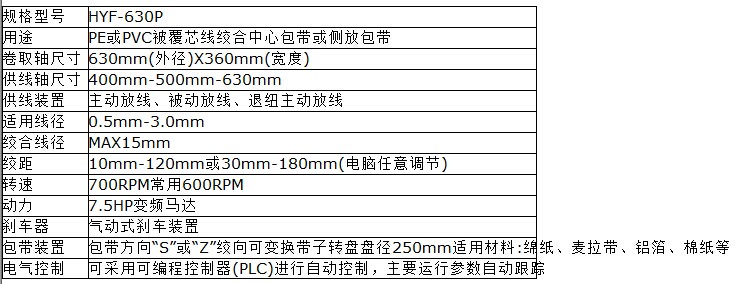 悬框式单绞机用途:适用于各类电源线、数据缆、控制电缆以及其他特种线缆的芯线绞合成缆,并同时完成中心包带及侧放包带。 悬框式单绞机技术参数:
